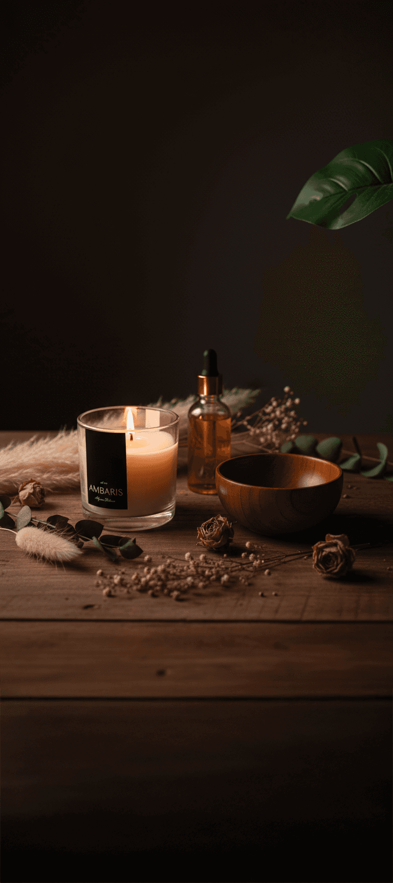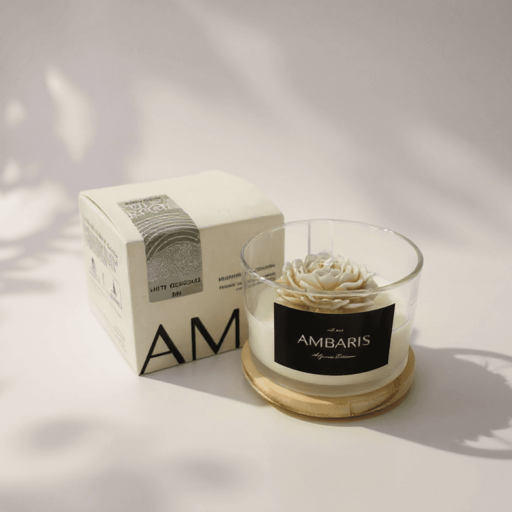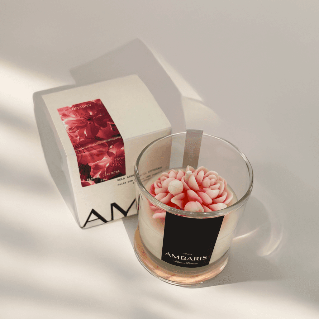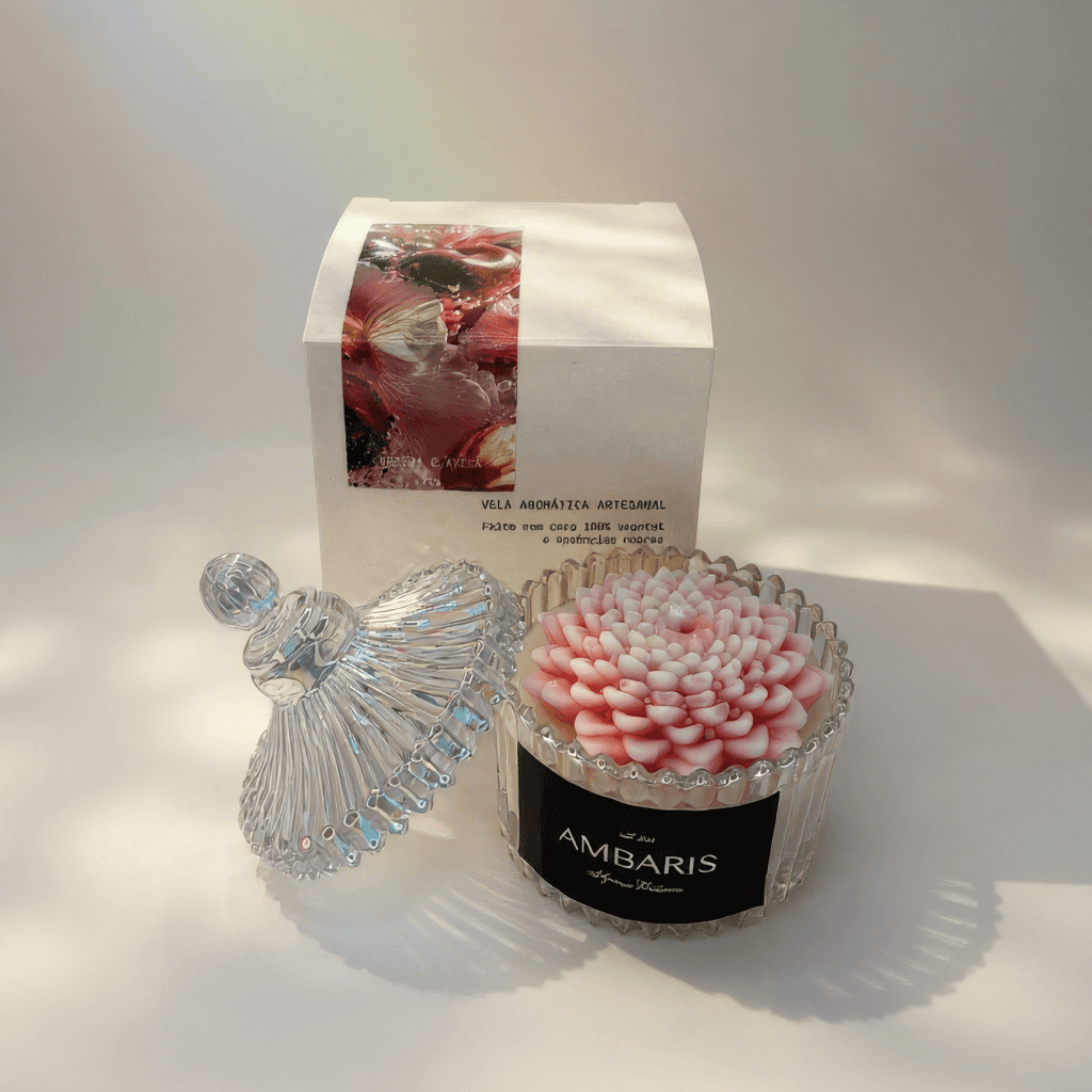 Cada peça Ambaris é produzida em pequenos lotes, com ceras vegetais puras, fragrâncias nobres e processos limpos.