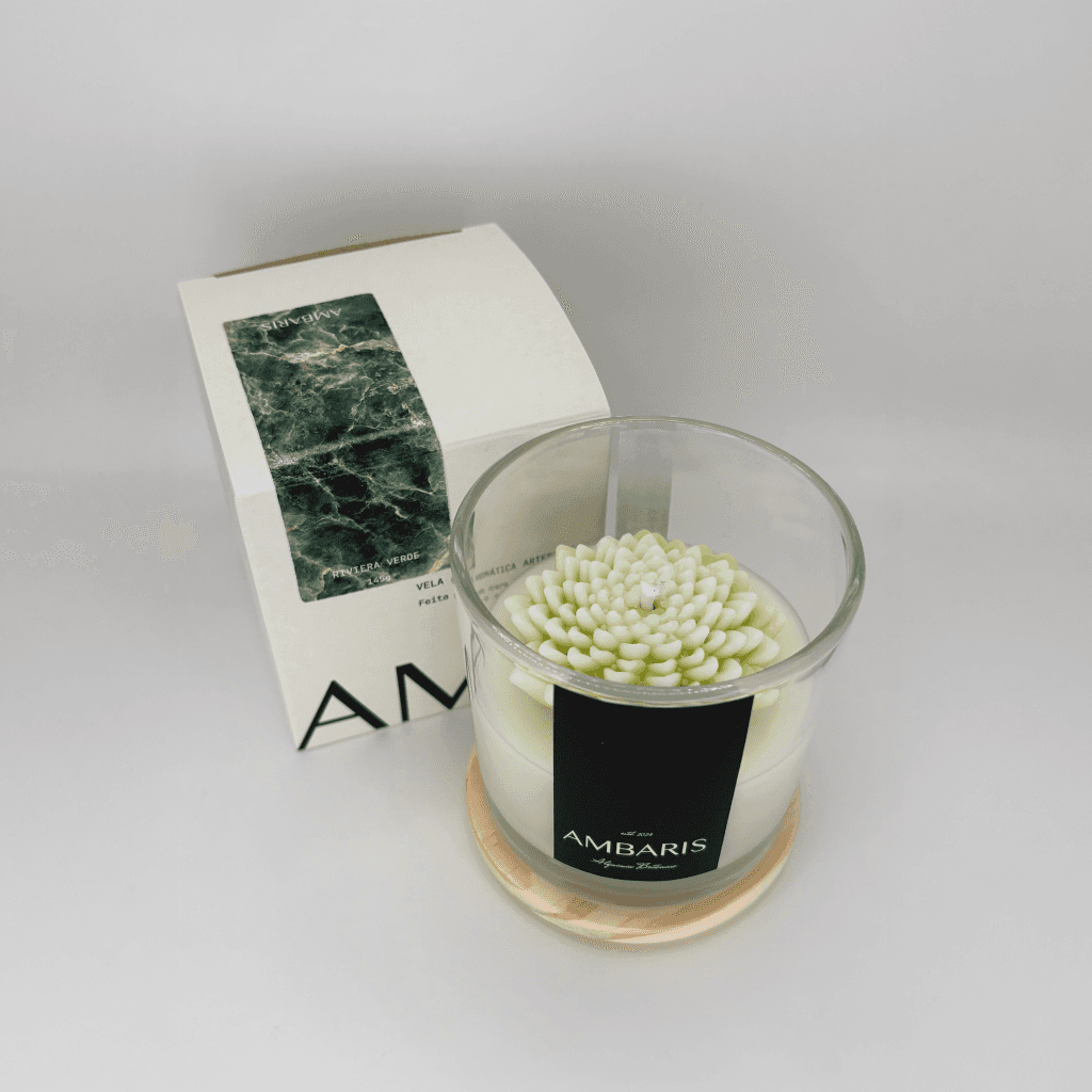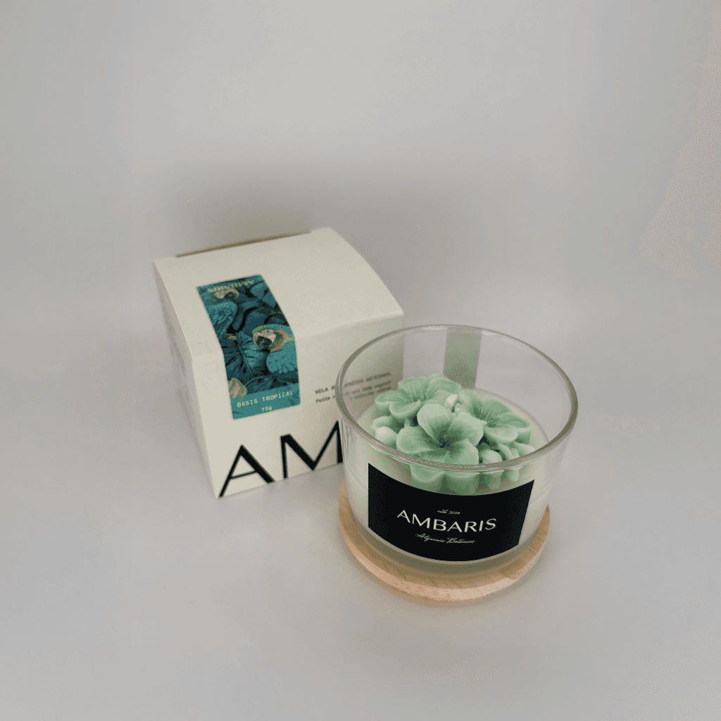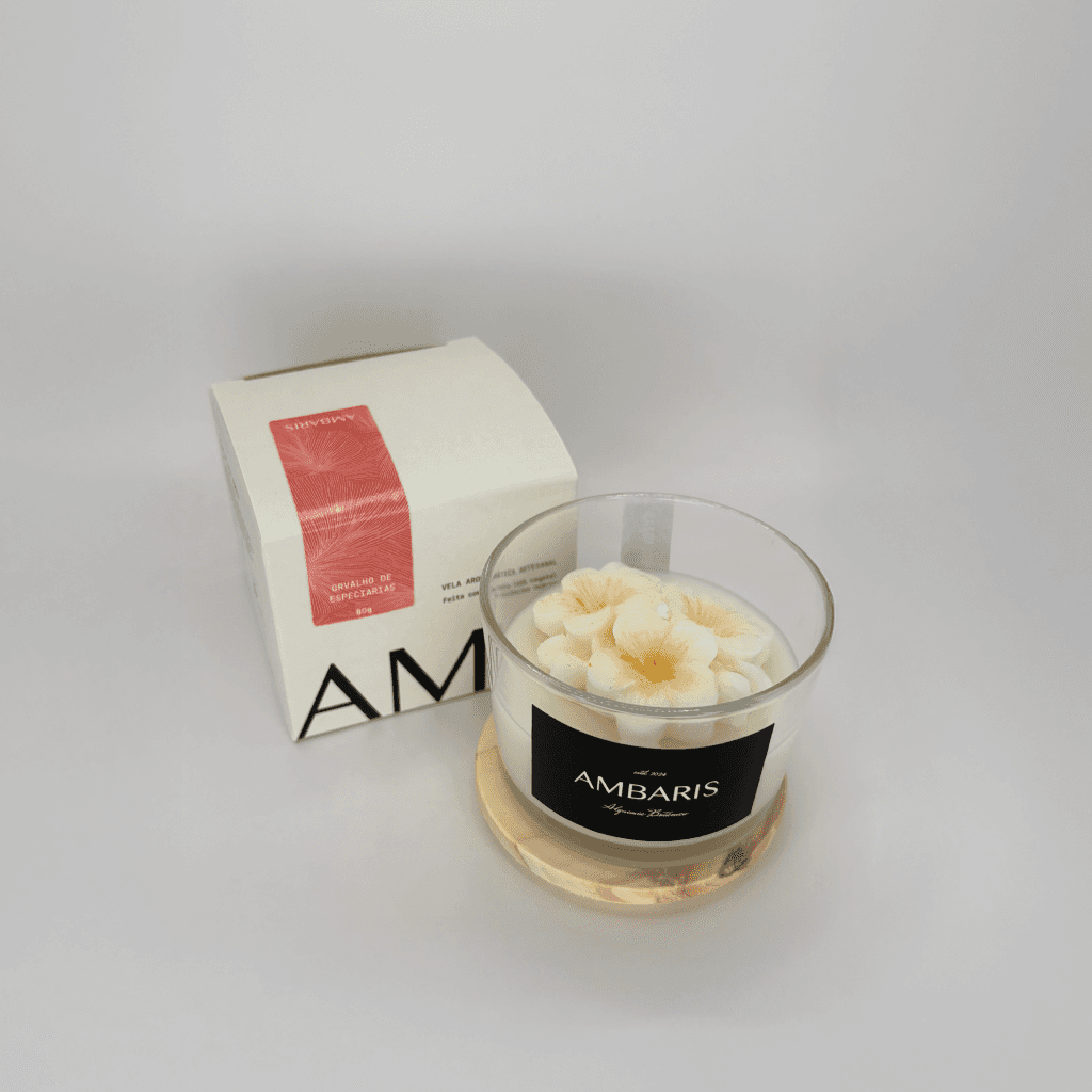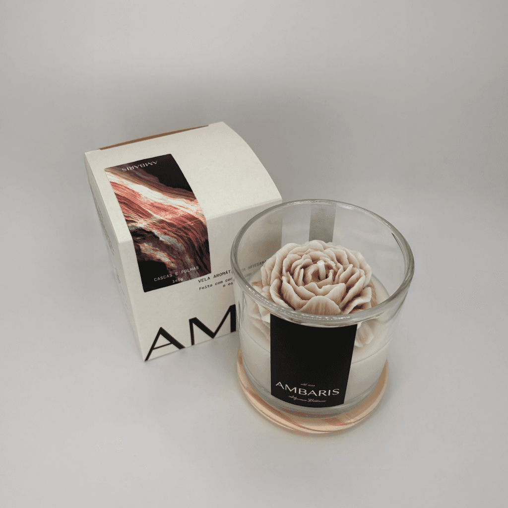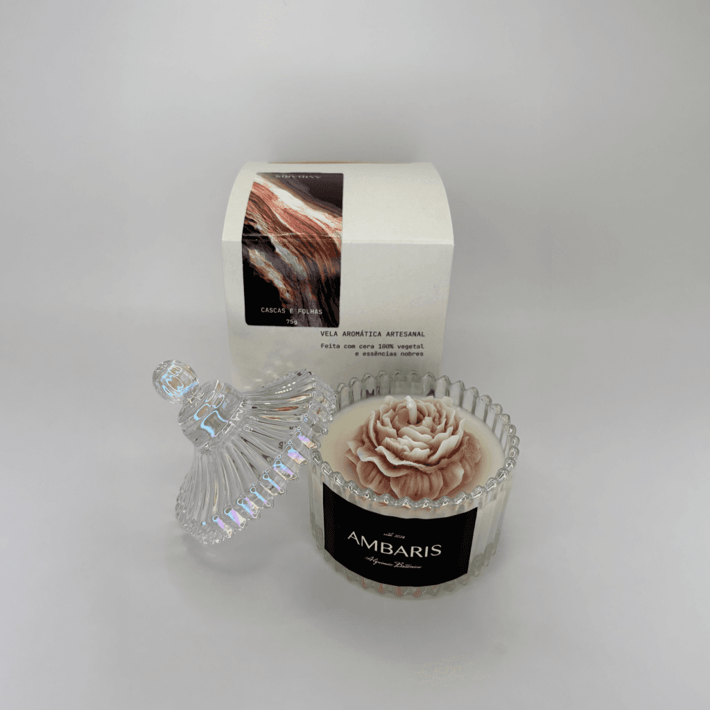 Cada peça Ambaris é produzida em pequenos lotes, com ceras vegetais puras, fragrâncias nobres e processos limpos.