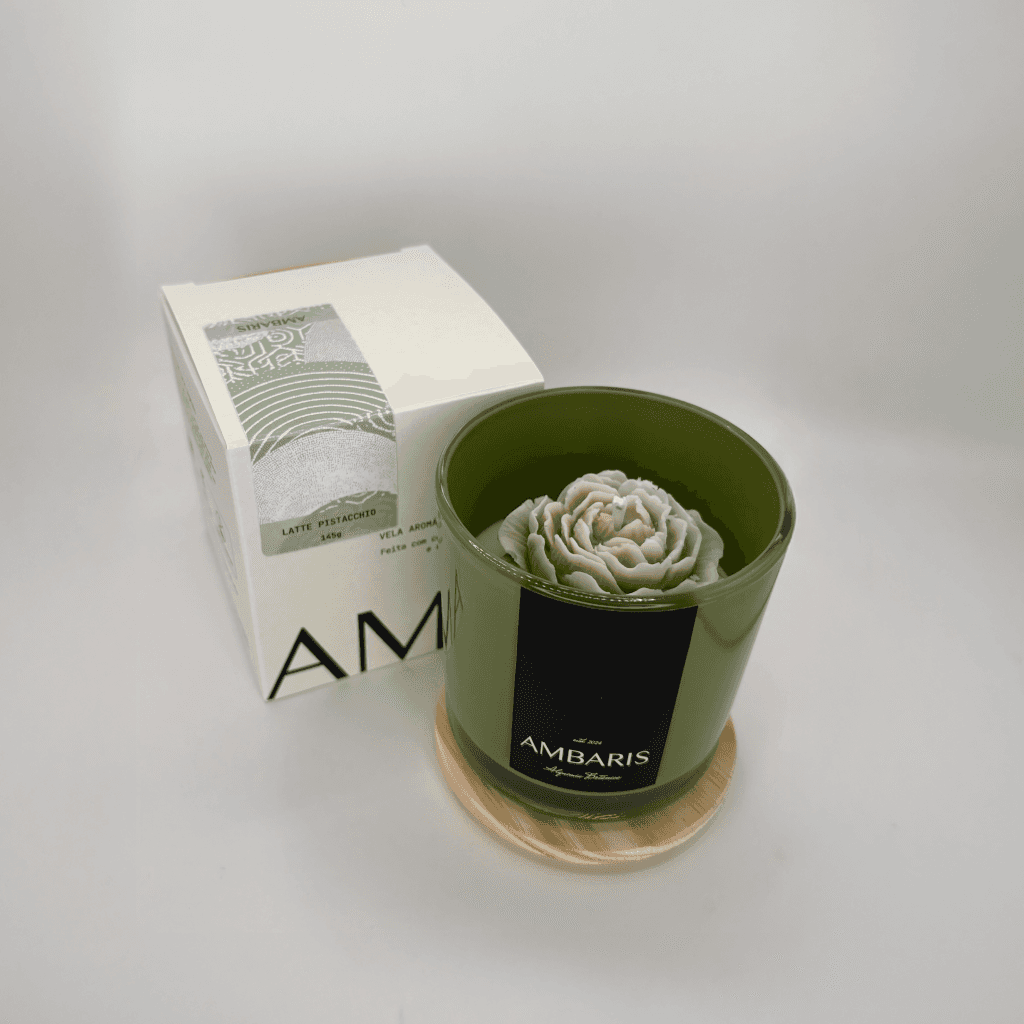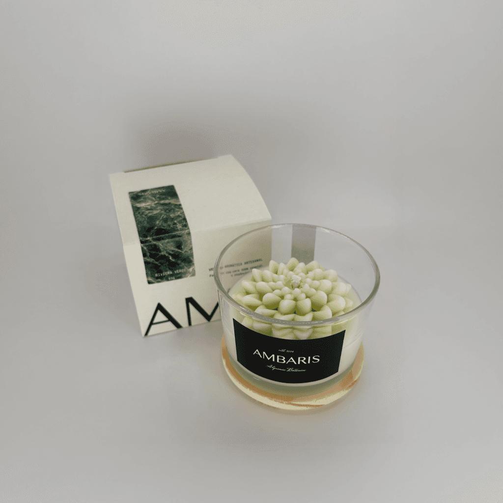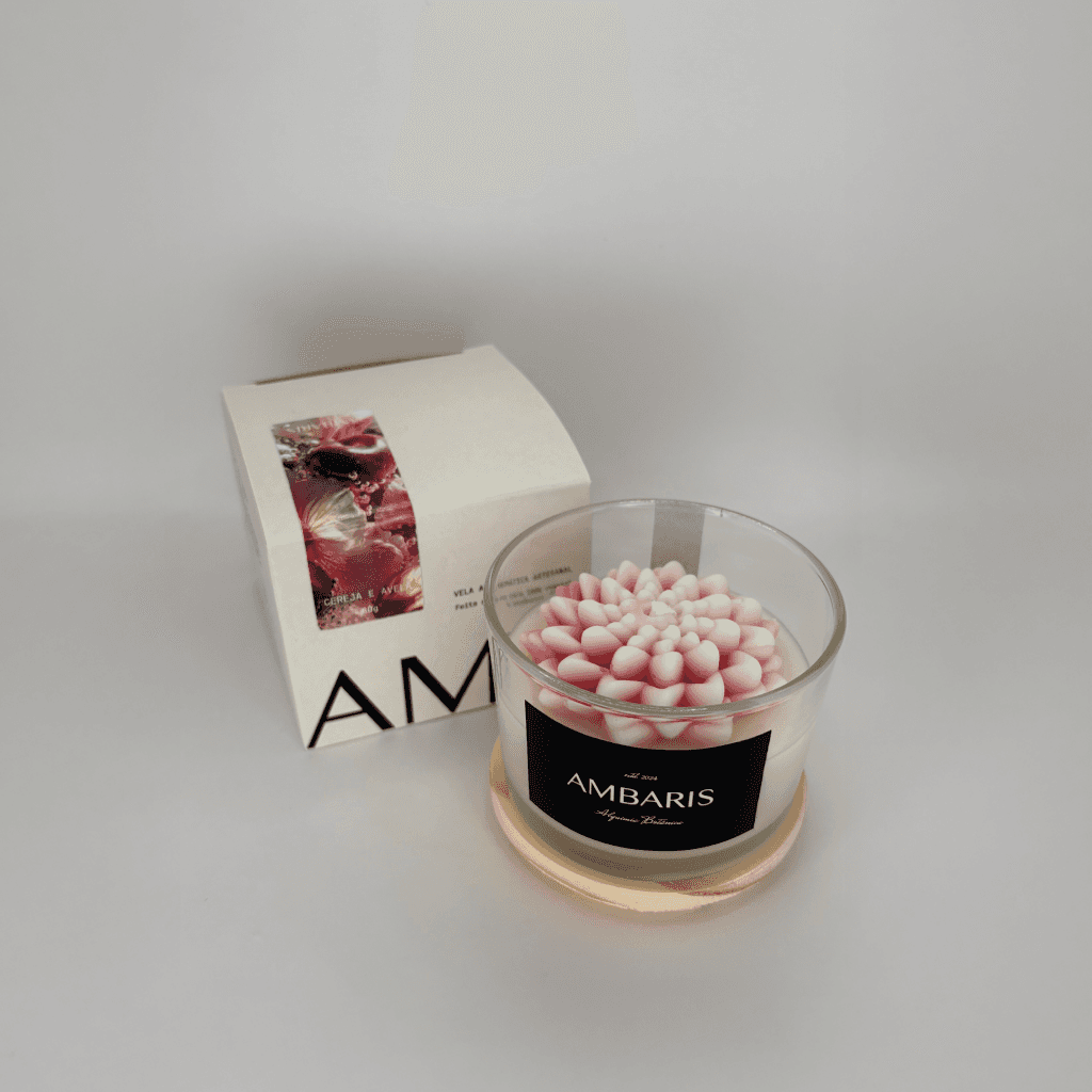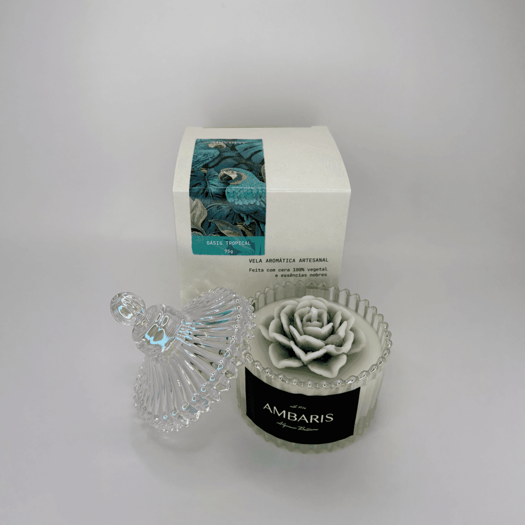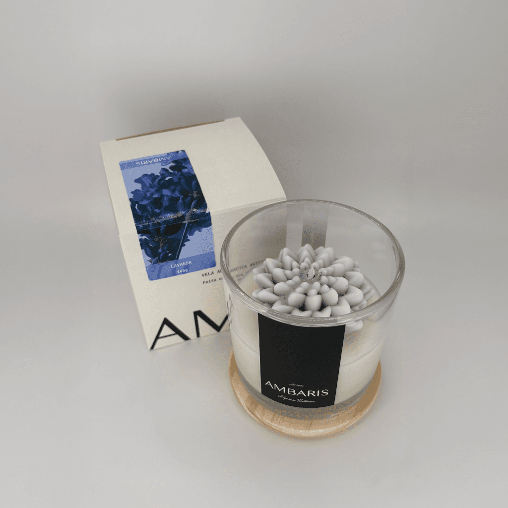Cada peça Ambaris é produzida em pequenos lotes, com ceras vegetais puras, fragrâncias nobres e processos limpos.