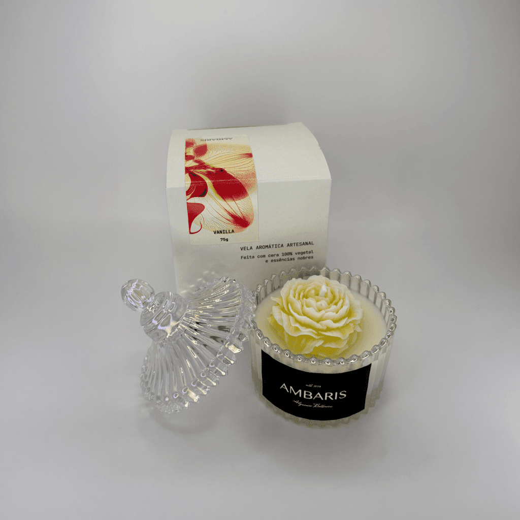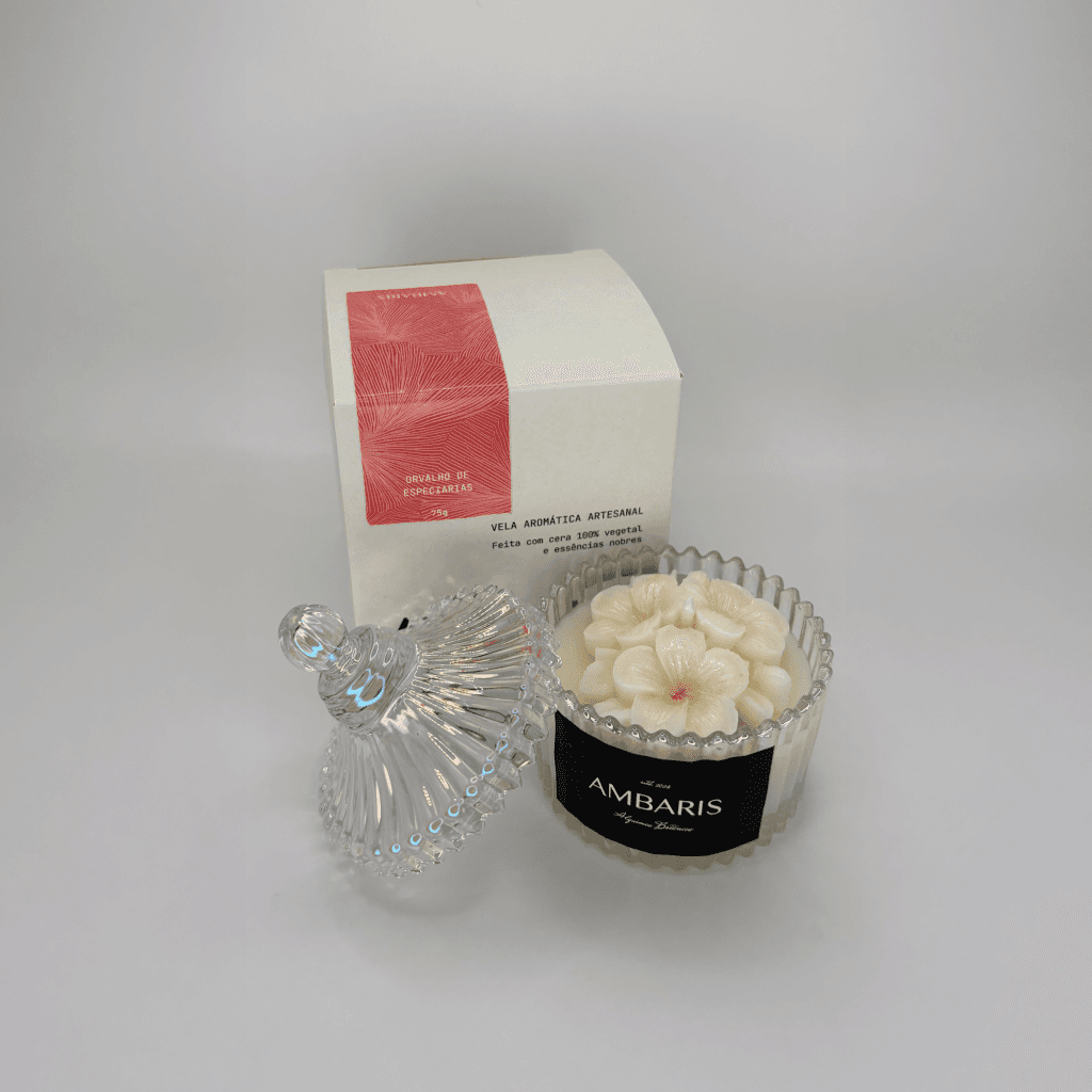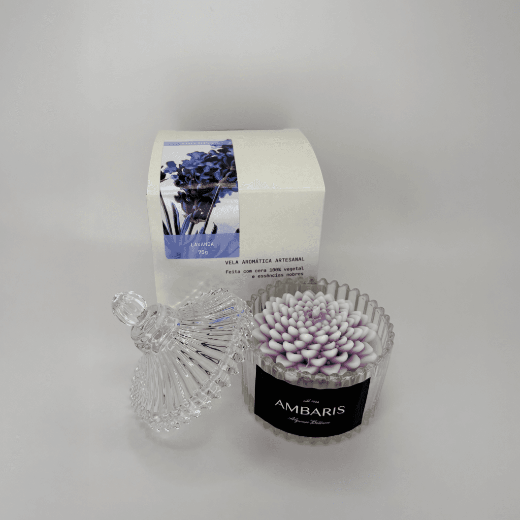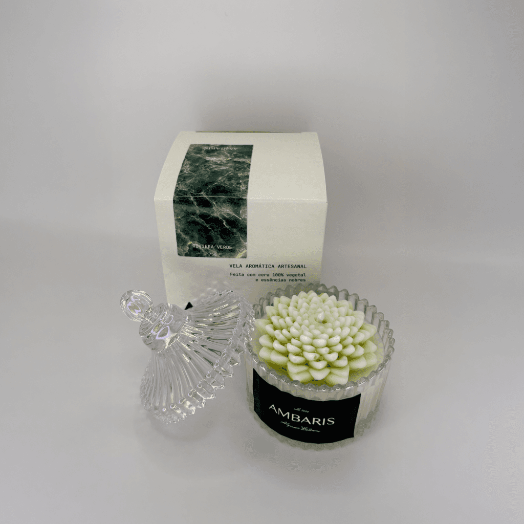 Cada peça Ambaris é produzida em pequenos lotes, com ceras vegetais puras, fragrâncias nobres e processos limpos.