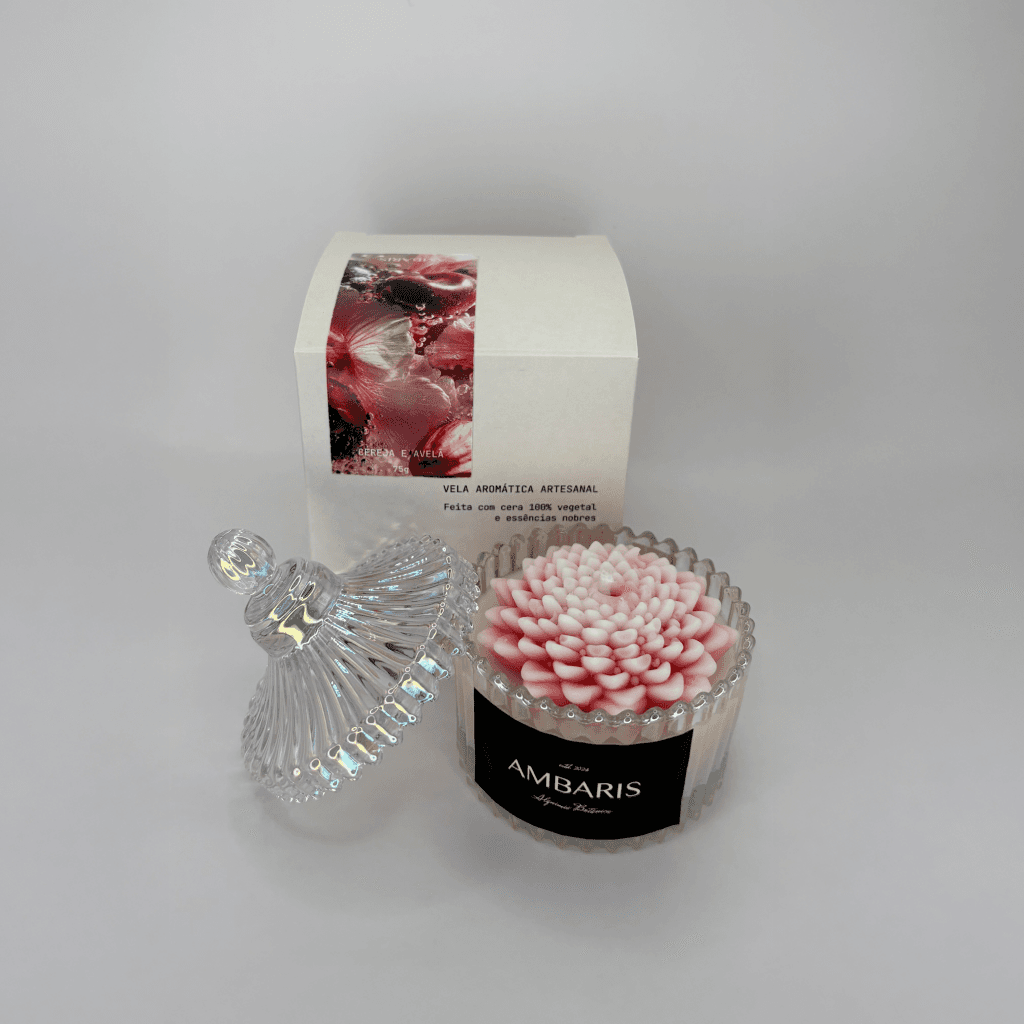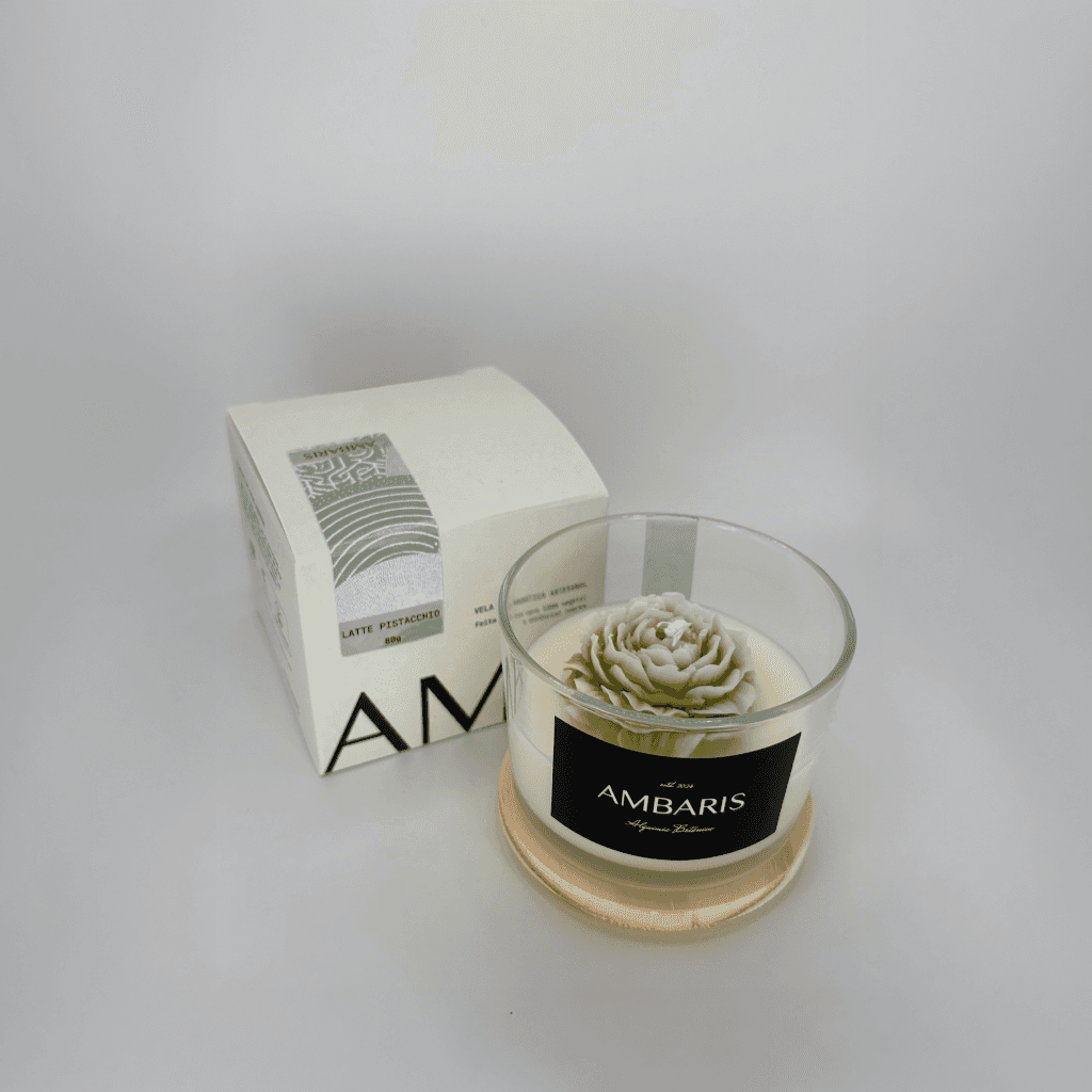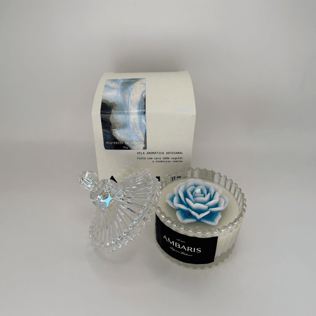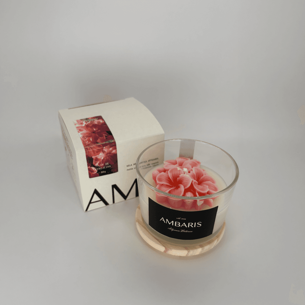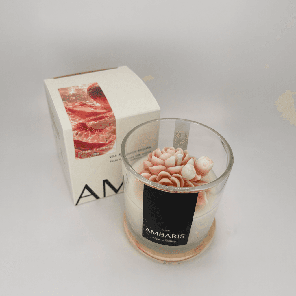 Cada peça Ambaris é produzida em pequenos lotes, com ceras vegetais puras, fragrâncias nobres e processos limpos.