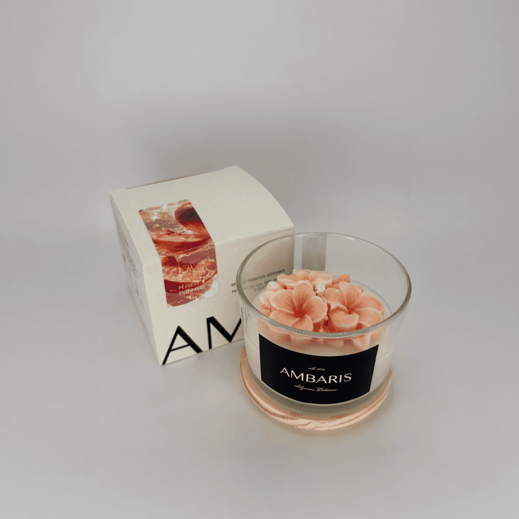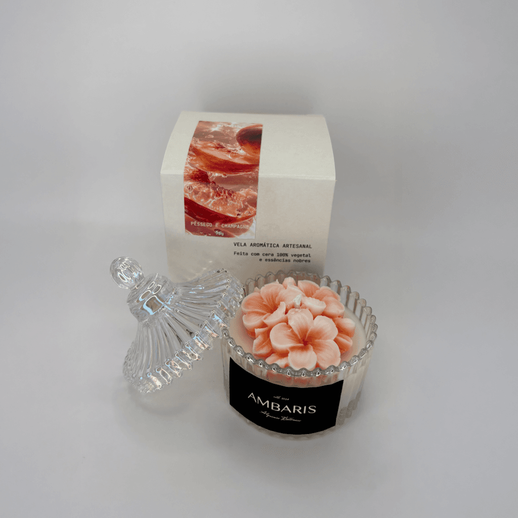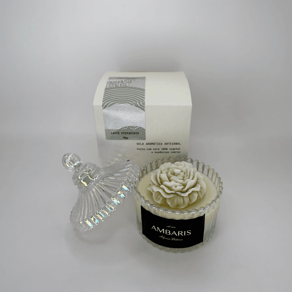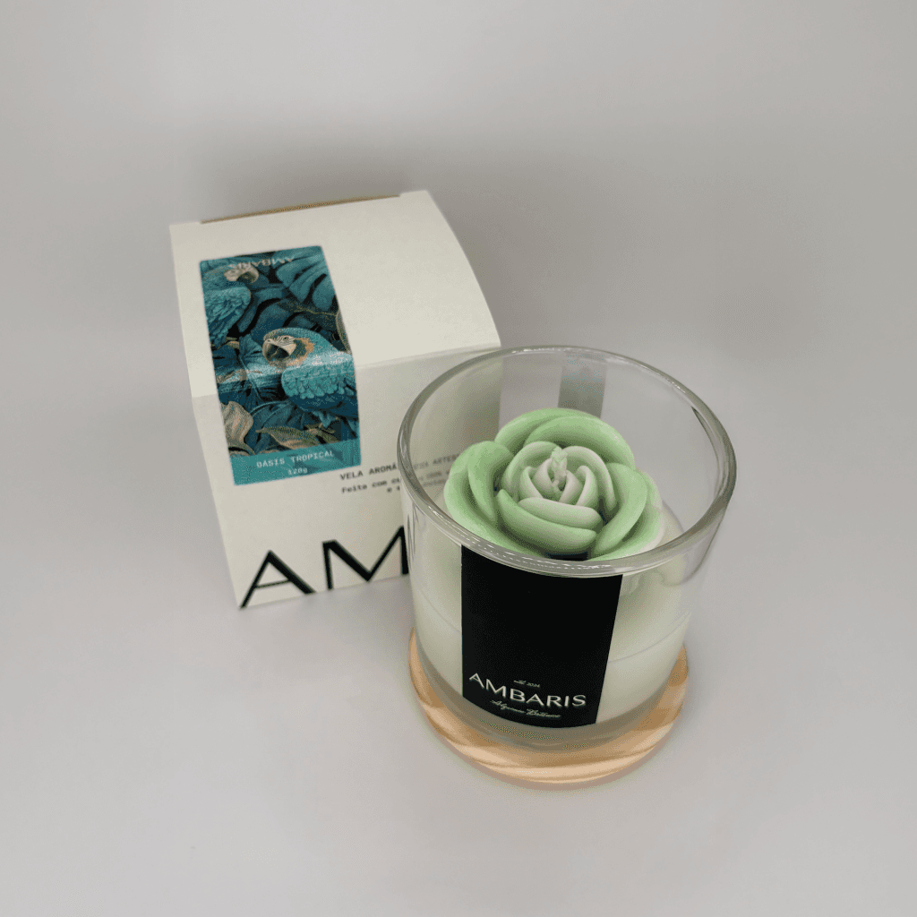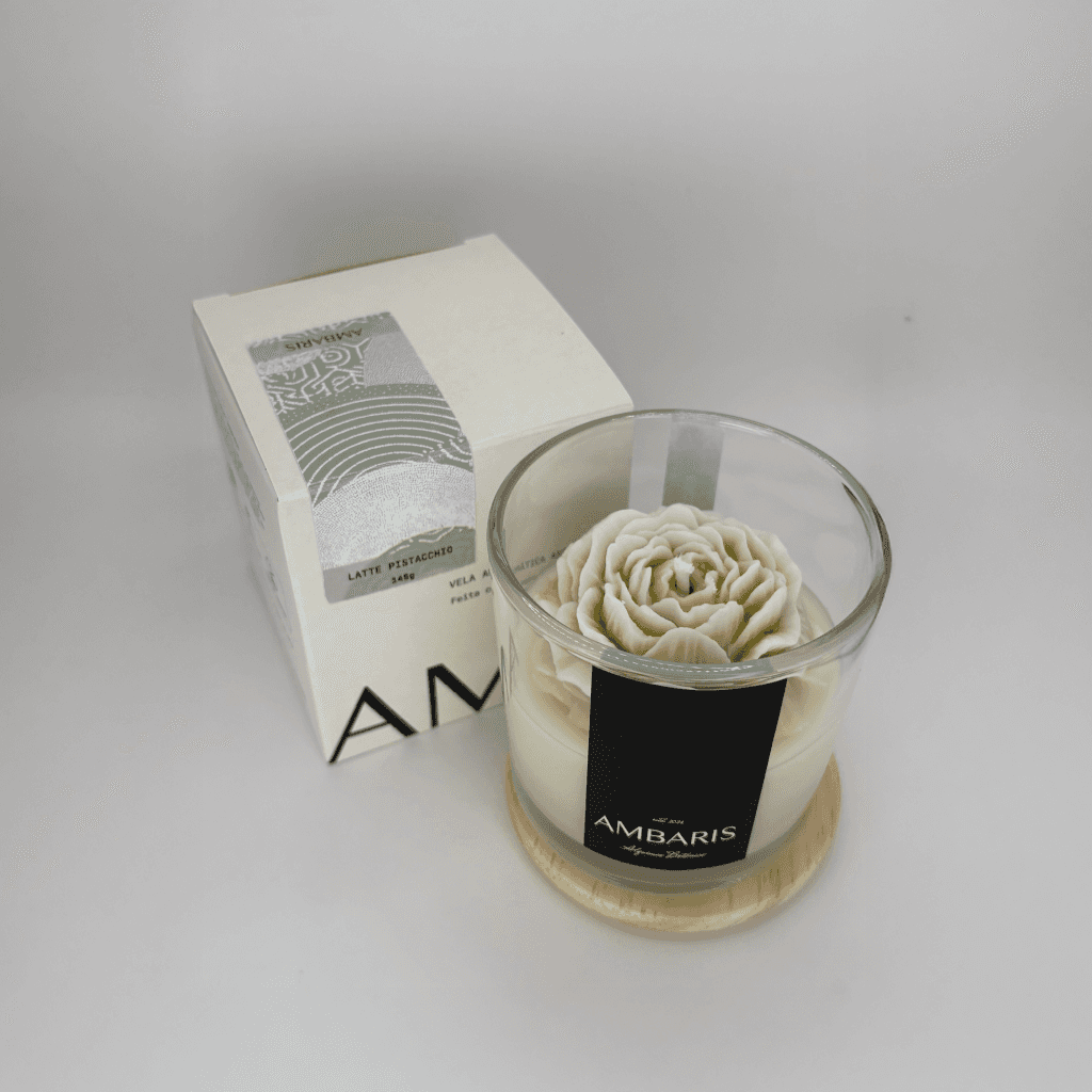 Cada peça Ambaris é produzida em pequenos lotes, com ceras vegetais puras, fragrâncias nobres e processos limpos.